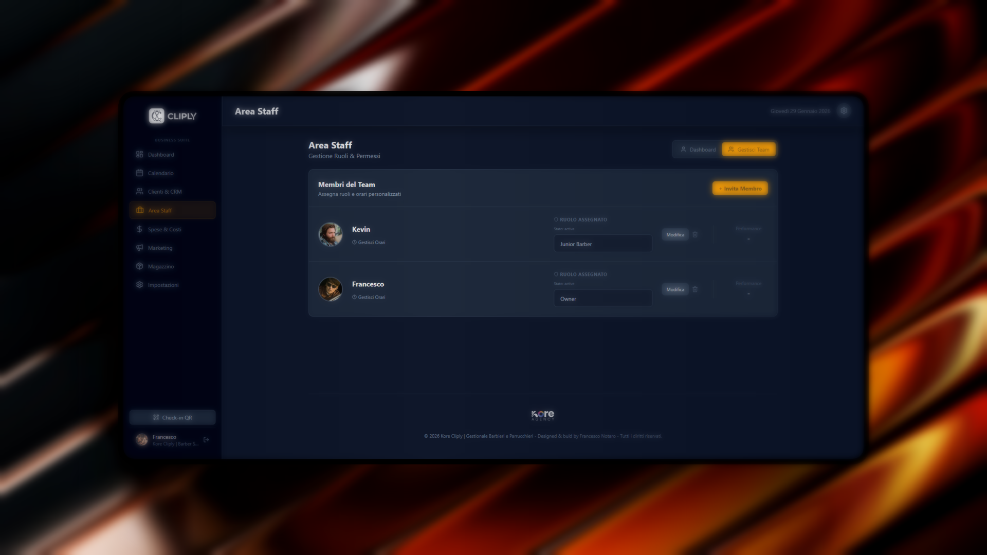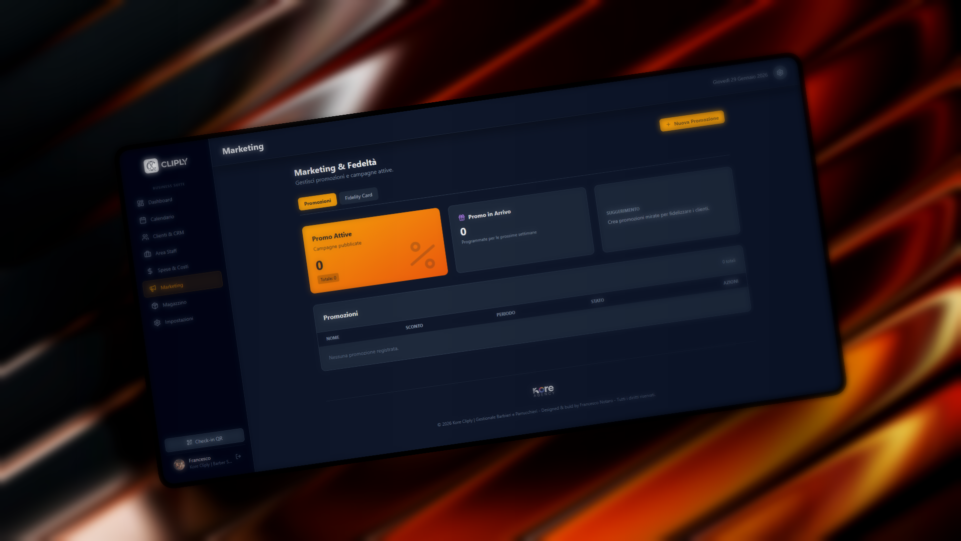 Dopo mesi di progettazione e sviluppo, oggi posso finalmente annunciare la nascita di Kore Cliply, un nuovo software gestionale pensato specificamente per barbieri e parrucchieri, con un obiettivo chiaro: semplificare la gestione quotidiana del salone e portarla a un livello più moderno e intelligente. Cliply non nasce come l’ennesimo gestionale “generico”, ma come uno strumento costruito attorno alle reali esigenze di chi lavora ogni giorno tra appuntamenti, clienti e incassi.